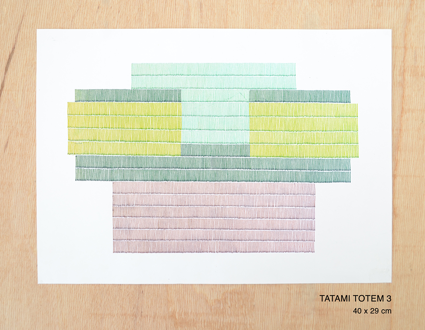 Recherche graphique inspirée du tatami, réalisée à Kyoto lors la conception de la collection de mobilier KAWAYAMA.