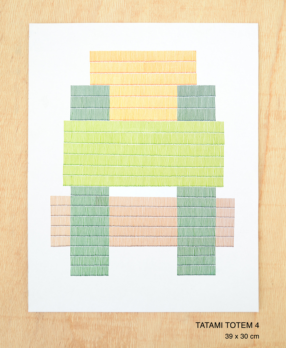 Recherche graphique inspirée du tatami, réalisée à Kyoto lors la conception de la collection de mobilier KAWAYAMA.