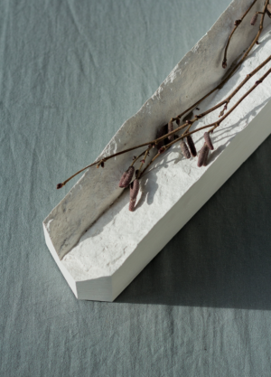 Elle nait d’explorations en forêt de Fontainebleau où, parmi ces formationsrocheuses si particulières façonnées sans intentions, je recherche les formes qui interpellent et appellent un usage. Il en résulte ces Fragments, empreintes de roches devenant coupes ou vides-poches, amenant dans notre intérieur l’authentique beauté du primaire. FRAGMENT fait partie de la collection Pareidolia qui questionne les capacités de l’humain à donner du sens à la forme