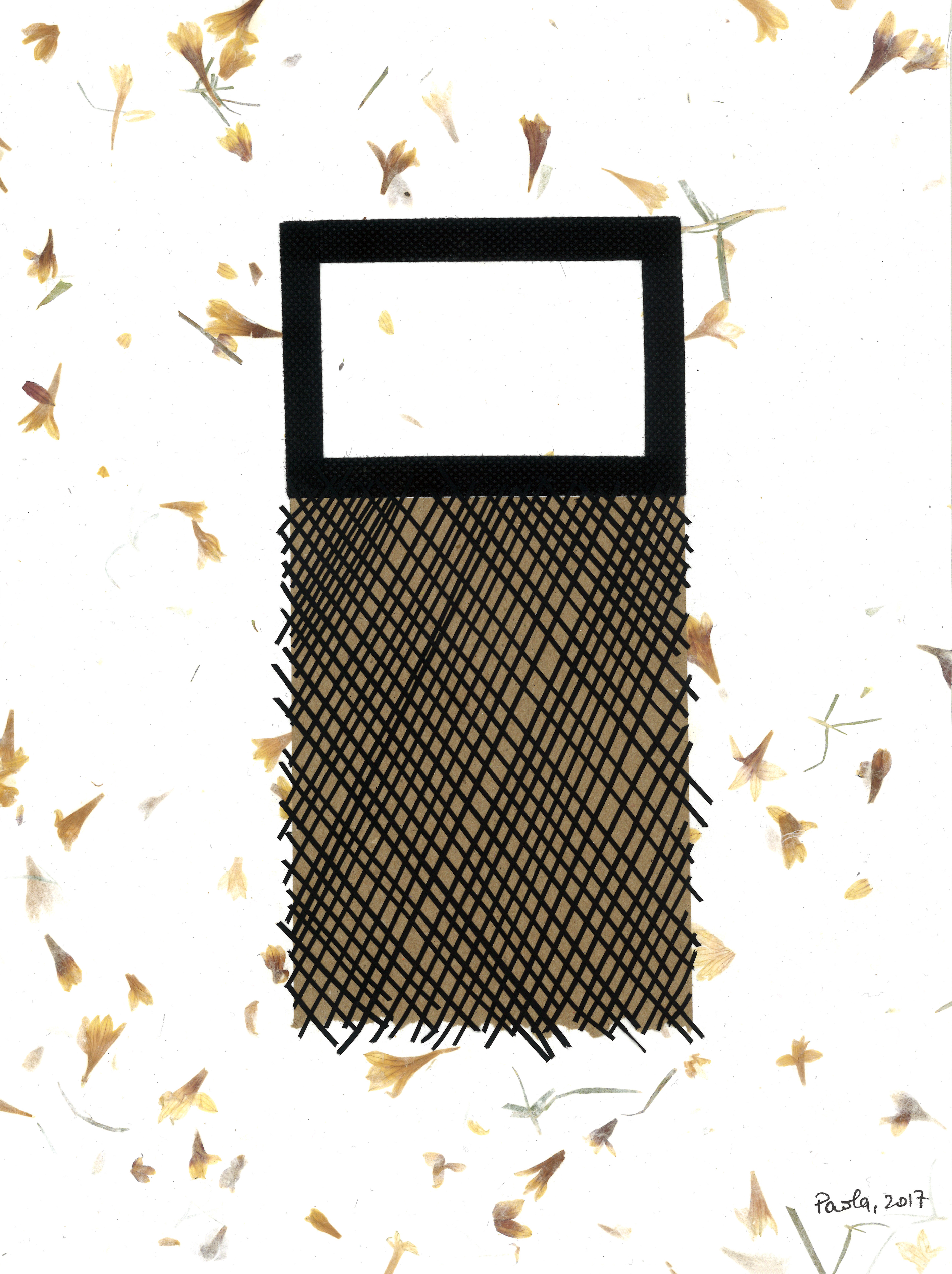 Collage de papier craft, textile-tape et washi-tape sur papier de fleurs.