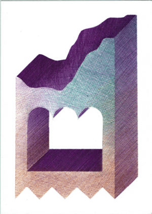 Comment traduire un dessin en objet ? Inspiré par son attrait pour la phase de recherche qui précède chaque projet de design, Riwan Coëffic s’intéresse au dessin préparatoire. Armé de son outil de prédilection, un stylo bic, il explore les possibilités de ce médium : trait fin, trames, dégradés et volumes texturés, les effets graphiques sont nombreux. L’étudiant s’inspire de formes qu’il croise au quotidien, un élément d’architecture, une arche, une fenêtre, un détail sur un objet, un morceau de montagne, un tunnel et les réunit au sein d’illustrations, composées par un hachurage coloré. Conçue au format A6, cette collection d’images représente une base de travail, un vocabulaire de formes, de textures vibrantes et de proportions.