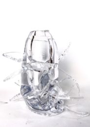 Dans la même veine, le vase Brindille fige à jamais dans le verre les délicats contours d’éléments puisés dans la nature. Enfin, l’Intouchable, comme son nom l’indique, interroge la fragilité du verre et le paradoxe entre la beauté et la dangerosité de ses éclats. Chacune des pièces présentées dans l’exposition sont singulières et uniques et expriment avec force l’énergie déployée pour leur donner vie.