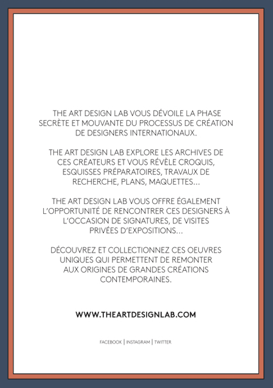 Design x Life valorise la créativité de ces designers et leur savoir-faire pendant cette phase secrète, mouvante et effervescente qui caractérise tout processus de création, avant de s’incarner dans la matérialité d’un objet. Les designers d’objets ou de meubles, des fashion-designers, des architectes, des paysagistes, des scénographes… ont sélectionné les dessins et travaux préparatoires les plus emblématiques et les plus significatifs pour les proposer aux amateurs et collectionneurs dans le but d’aider les personnels soignants et les chercheurs.