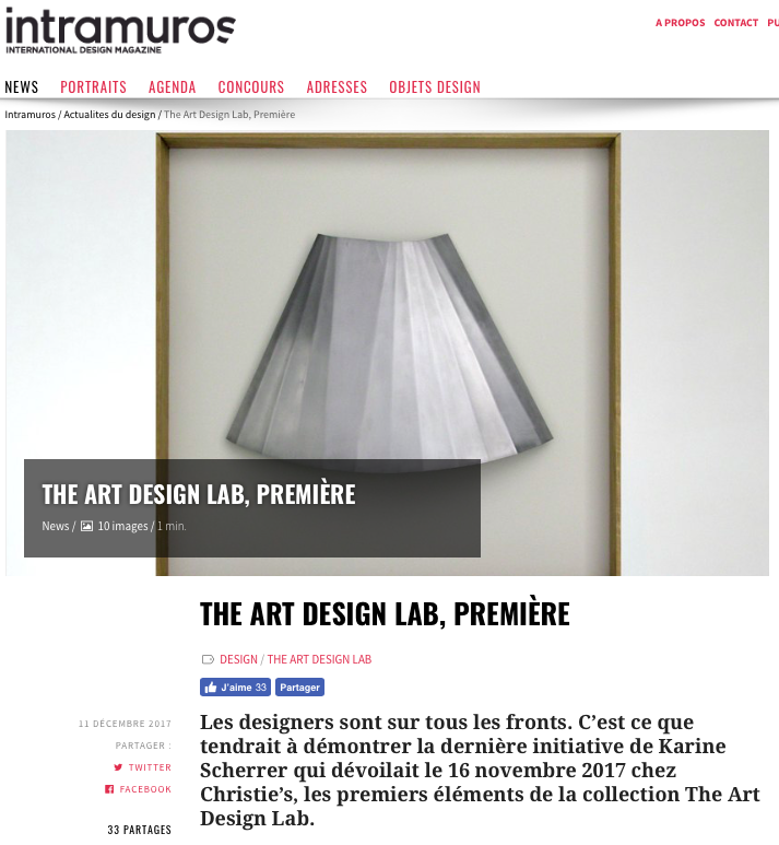 The Art Design Lab a présenté les oeuvres de ces 10 designers lors du lancement de la plateforme chez Christie’s Paris du 15 au 21 novembre. Découvrez les photos de la soirée d’inauguration sur : http://saywho.fr/evenements/the-art-design-lab-expose-chez-christies/
